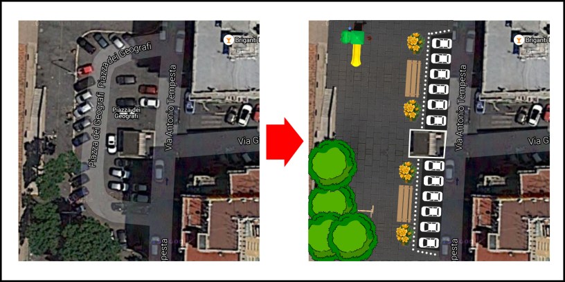 In una fase successiva, dopo un periodo di test per verificare gli effetti e valutare le criticità (e magari con accordi di sponsorship, contributo diretto dell’amministrazione, crwodfunding), sarebbe poi possibile installare degli arredi urbani come panchine, fiorere e giochi.