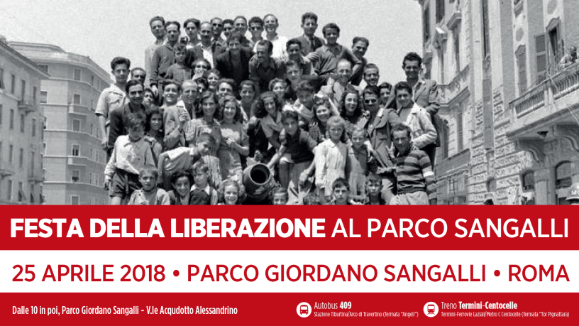 Per il quarto anno consecutivo ci ritroviamo al Parco Sangalli per festeggiare insieme la Liberazione dal nazifascismo. Le associazioni del territorio si sono offerte di partecipare al nostro pic nic offrendo un proprio contribuito alla festa.