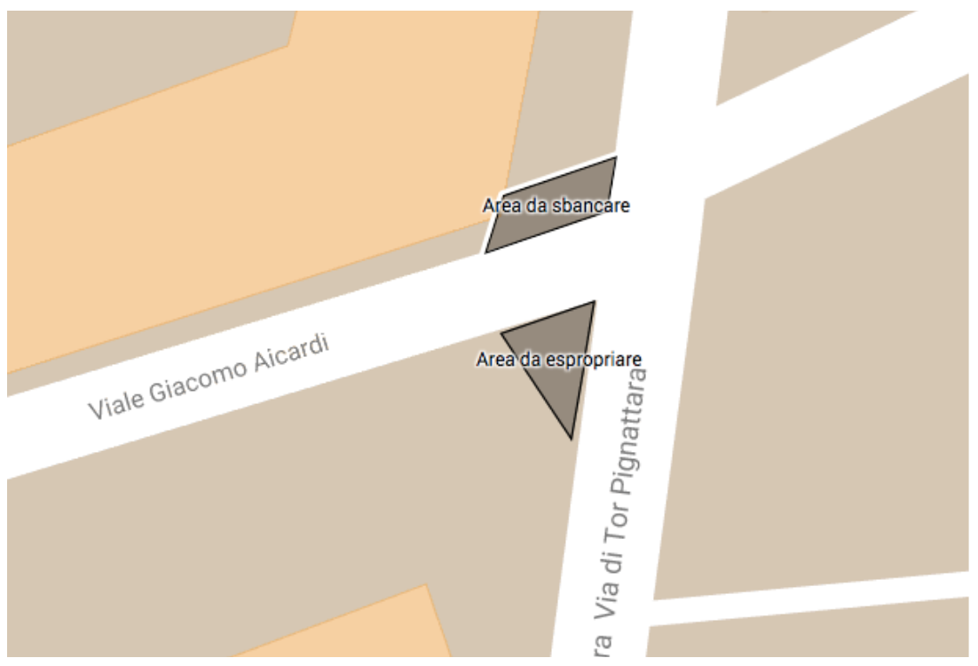 Nel primo caso la soluzione possibile sarebbe la rimozione, sul lato di via Aicardi, di parte della scarpata in modo da liberare l’arco dell’Acquedotto e contestualmente procedere all’esproprio di circa 30mq di area privata (sull’altro lato) per consentire di creare un piccolo disimpegno stradale in cui convogliare la marcia dei pedoni dopo aver liberato il varco dalla materia cementizia che attualmente lo occlude.