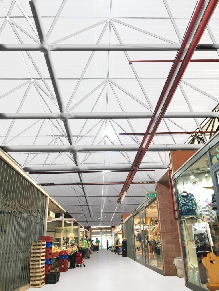 Cuore del progetto è la creazione di una grande piazza centrale all’interno del mercato, una richiesta specifica di tanti operatori che avevano l’esigenza di mettere creare una sorta di “centro della polis” che potesse essere uno spazio commerciale autenticamente comunitario, aperto alla cultura, agli eventi, all’animazione sociale. Per esaltare questo nuovo “polo” del quartiere, viene proposto di ampliare l’ingresso ed eliminare le scale mobili, in modo da creare una grande piazza esterna che, dialogando con quella interna, possa esaltare la natura “aperta” dello spazio rigenerato.