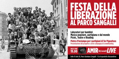 News FESTA DELLA LIBERAZIONE AL PARCO GIORDANO SANGALLI – AMIR IN CONCERTO IL 25 APRILE A TOR PIGNATTARA aprile 13, 2016 — 0 Comments